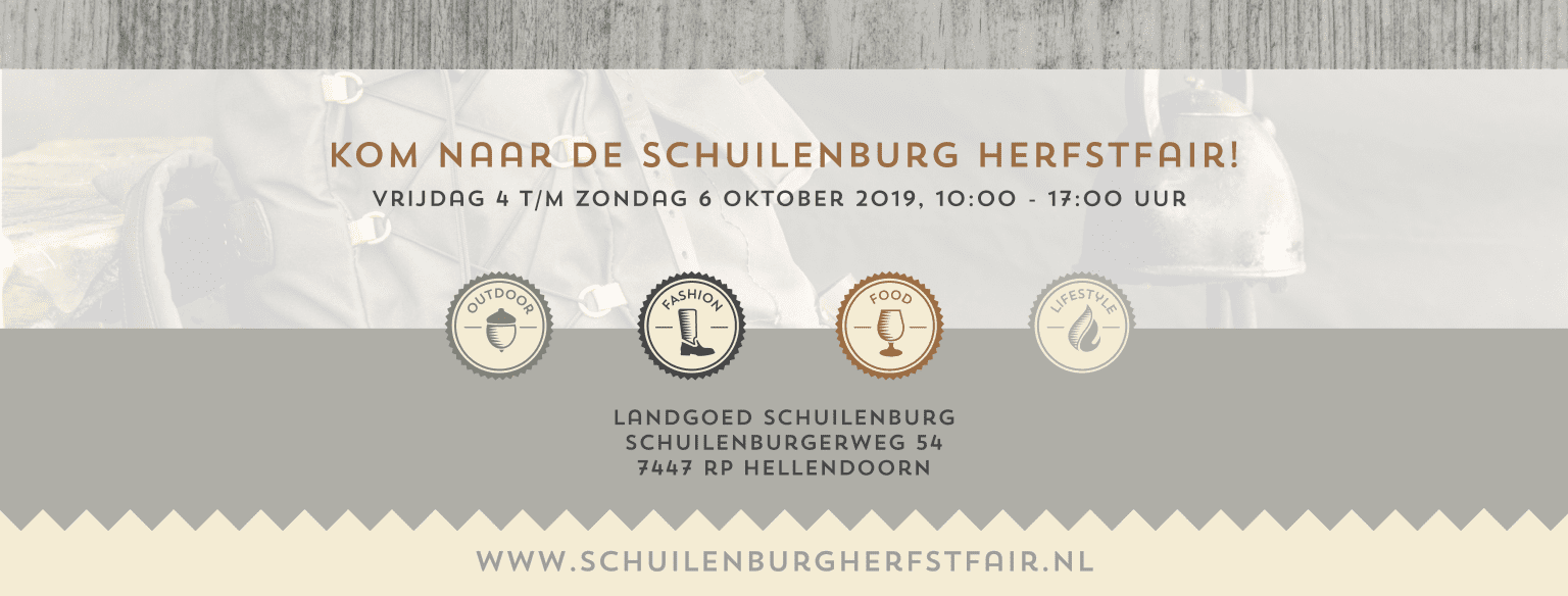 Op landgoed Schuilenburg in Hellendoorn, prachtig gelegen aan de rivier de Regge, organiseerden wij de Schuilenburg Herfstfair. Tijdens deze driedaagse fair genoten bezoekers van het goede leven: struinen langs ruim zeventig stands vol woondecoratie, tuinartikelen, kleding, accessoires, kunst en lekkernijen. Er waren creatieve herfstworkshops, demonstraties op het demoplein en zelfs boottochtjes over de Regge om de fair compleet te maken.